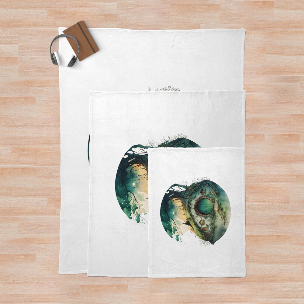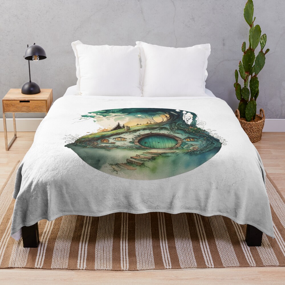 Round Doors In Watercolor And Ink Black Halfling Hole Fantasy Throw Blanket