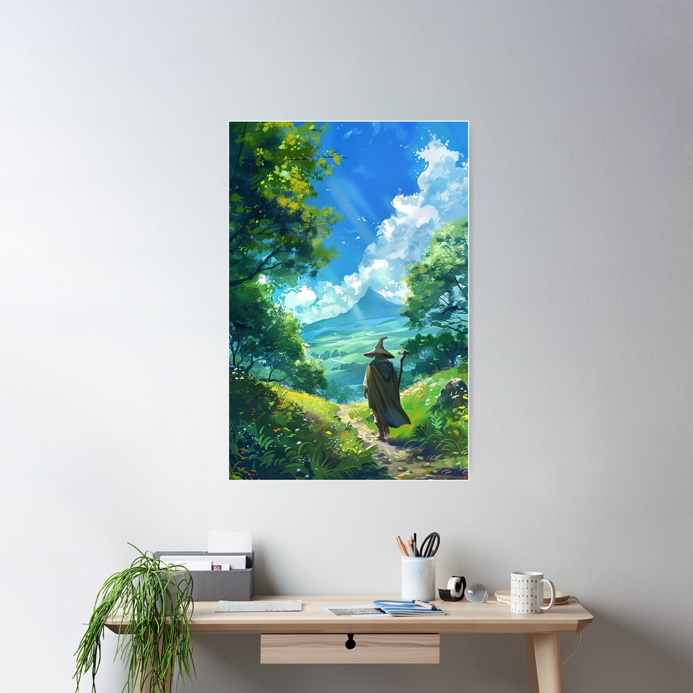 Unexpected Journey Ghibli Inspired Fantasy Art Hobbit Landscape Illustration Poster